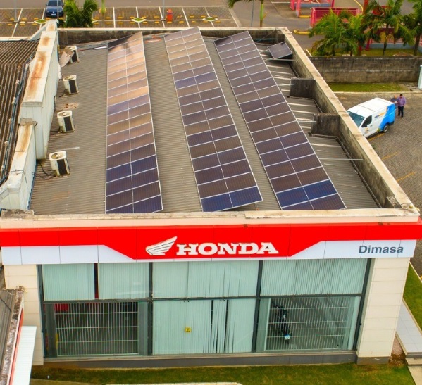 Com instalação de 58 módulos fotovoltaicos e sistema de quase 31 KW/p de potência, a concessionária Dimasa Honda de Criciúma aposta forte na economia de energia sustentável. Em parceria com a Roger Energy, também de Criciúma, o projeto obtém retorno em até cinco anos e gera redução de até 95% na fatura de energia elétrica.